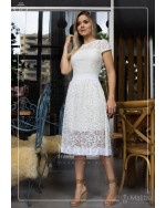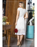 Vestido em renda Off White com leve transparência na altura da gola e do barrado da sua saia godê.