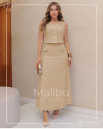 Este deslumbrante conjunto na cor bege, confeccionado em crepe de alfaiataria de alta qualidade, é a escolha perfeita para quem busca elegância e conforto. A blusa regata de caimento impecável e a saia midi com fenda frontal e bolsos laterais, combinam harmoniosamente para criar um visual sofisticado e moderno. Versátil, este conjunto pode ser usado em diversas ocasiões, do ambiente de trabalho a eventos sociais.
