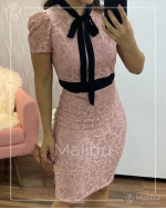 Vestido feito em renda no tom rose, possui manga princesinha e uma leve transparência na altura dos ombros. Para deixar e peça inda mais estilosa, na altura da gola possui um tecido para usar estilo gravatinha, na altura da cintura um faixa também né cor preta para fechar o look com muito estilo e bom gosto.